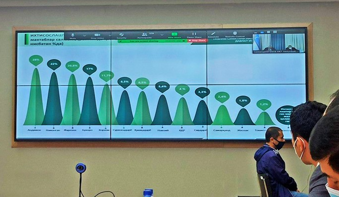 Йиғилишда 2019/2020 ўқув йили учун мактаблар рейтингини аниқлаш мақсадида 2019 йилнинг 3 октябрдан 18 декабргача республикамизнинг барча туман ва шаҳарларидан 992 та умумтаълим муассасаларида назорат ишлари ва ижтимоий сўровнома натижалари таҳлил этилди.
