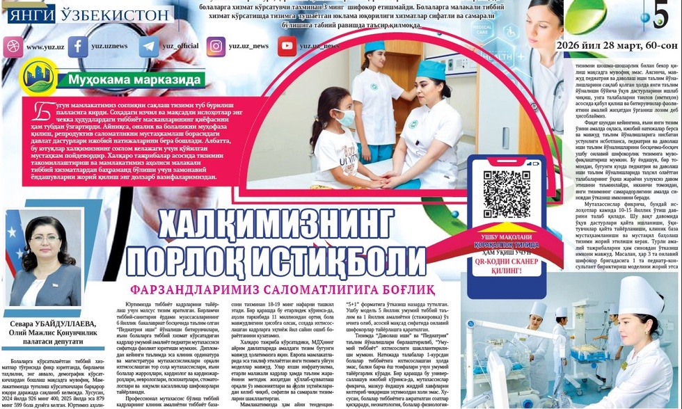 Айниқса, оналик ва болаликни муҳофаза қилиш, репродуктив саломатликни мустаҳкамлаш борасидаги давлат дастурлари ижобий натижаларини бера бошлади. Албатта, бу ютуқлар халқимизнинг соғлом келажаги учун қўйилган мустаҳкам пойдевордир. Халқаро тажрибалар асосида тизимни такомиллаштириш ва мамлакатимиз аҳолиси малакали тиббий хизматлардан баҳраманд бўлиши учун замонавий ёндашувларни жорий қилиш энг долзарб вазифаларимиздан.