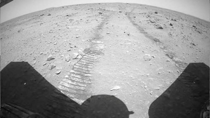 Оқ-қора рангдаги суратда сайёранинг чўл манзаралари, марсоходнинг излари кўриниб турибди. Ускуна уч ойлик миссия доирасида қизил сайёранинг сиртини ўрганмоқда. Zhurong Марснинг геологик тузилишини, атмосфераси ҳамда тупроғини ҳам ўрганади. Шунингдек, марсохонд сайёрада ҳаёт изларини топиши, сув ёки музликлар бор-йўғлигини аниқлаши керак.