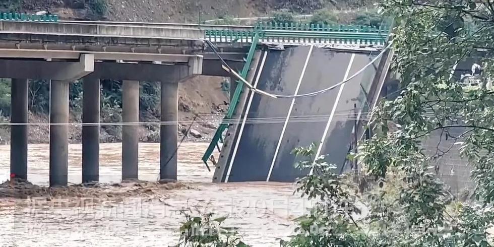 Шэньси вилоятидаги Шанло шаҳридаги Чжашуй уездидаги автомобиль кўприги кучли ёмғир туфайли қулаб тушди. Оқибатда 17 та енгил автомобиль ва саккиз юк машинаси дарёга тушиб кетди.
