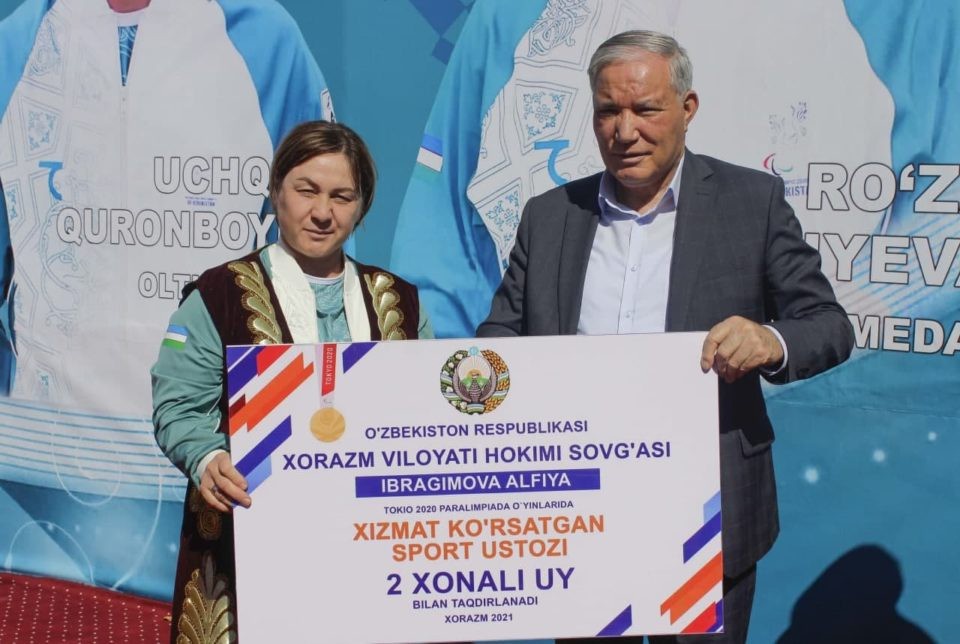 Вилоят ҳокими   Паралимпия ўйинларида юқори натижаларга эришган спортчи ва мураббийларни муносиб тақдирлади. Парадзюдочи Учқун Қуронбоев ва унинг мураббийи Алфия Ибрагимоваларнинг ҳар бирига икки хонали, пауэрлифтингчи Рўза Қўзиева ва парадзюдочи Нафиса Шарипбоеваларга эса бир хонали уйлар тантанали равишда топширилди.