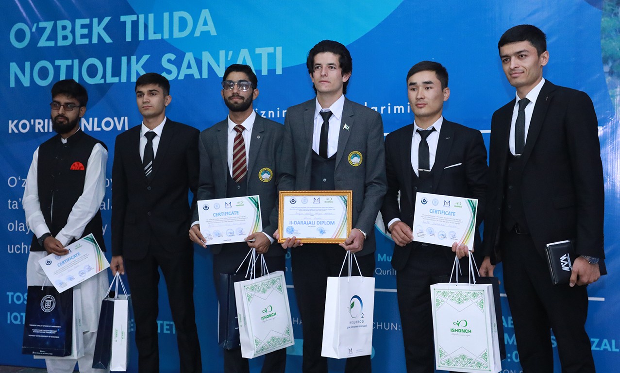 Мамлакатимиз ҳаётидаги муҳим сана — 21 октябрь — Ўзбек тилига давлат тили мақоми берилган кун муносабати билан ташкил этилаётган турли тадбирларда тилимизни иштиёқ билан ўрганаётган чет элликлар ҳам фаол иштирок этмоқда. Бу жиҳат Тошкент давлат иқтисодиёт университети ташаббуси билан юртимизда илк бор хорижий давлат фуқаролари бўлган талабалар ўртасида ўтказилган “Ўзбек тилида нотиқлик санъати” кўрик-танловида ҳам яққол намоён бўлди.