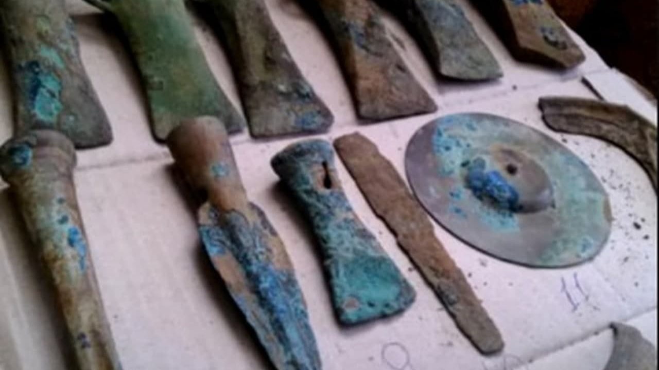 Кейинчалик ушбу бумлар 3 000 ёшда бўлган қўлбола усулда қуйилган 80 грамм олтин фальга бўлаги ва бронзадан ясалган қадимги меҳнат қуроллари эканлиги маълум бўлди.