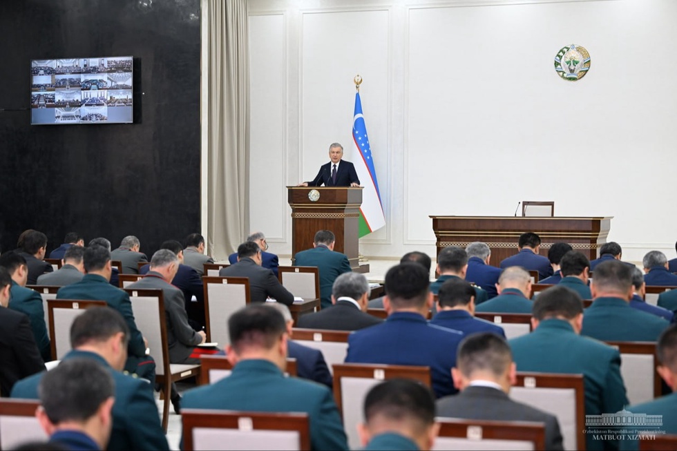 Президент Шавкат Мирзиёев Ички ишлар вазирлигининг кенгайтирилган ҳайъат йиғилишида ҳуқуқ-тартибот соҳасидаги ишлар аҳволини таҳлил қилиб, келгусидаги вазифаларни белгилаб бермоқда.