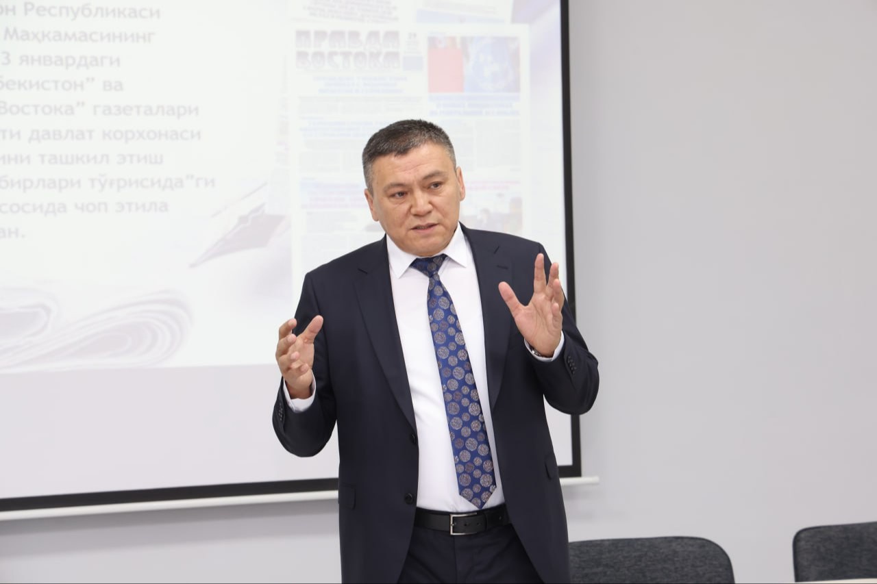 Самимий руҳда бошланган, очиқ мулоқот тарзида ўтган тадбирда “Янги Ўзбекистон” ва “Правда Востока” газеталари бош муҳаррири Салим Дониёров, университетнинг Оммавий ахборот воситалари ва нашриёт бўлими бошлиғи Бахтиёр Ҳасанов глобаллашув жараёни жадал кечаётган, ахборот хуружи кун сайин авж олаётган, шу тариқа бутун дунёда хавфсизликка таҳдид кезиб юрган таҳликали бир шароитда холис ахборотга эҳтиёж ҳар қачонгидан ҳам кучаяётгани ҳақида гапирди.