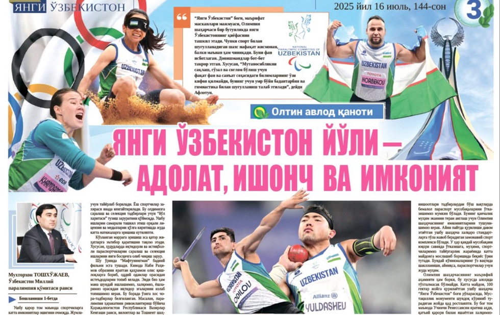 Шу каби тизимли ишлар 2028 йил Лос-Анжелес шаҳрида бўлиб ўтадиган XVIII Паралимпия ўйинларида ватанимиз спортчилари янада юқори марраларни забт этишига қаратилган.