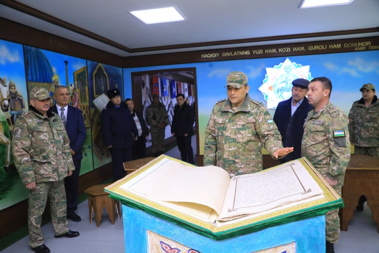 Меҳмонлар янги биноларни кўздан кечириш давомида ҳарбий хизматчиларнинг аждодларимиз тарихини ўрганишга бўлган қизиқишлари ва энг илғор ахборот технологияларини ўзлаштиришга интилишини эътироф этди.