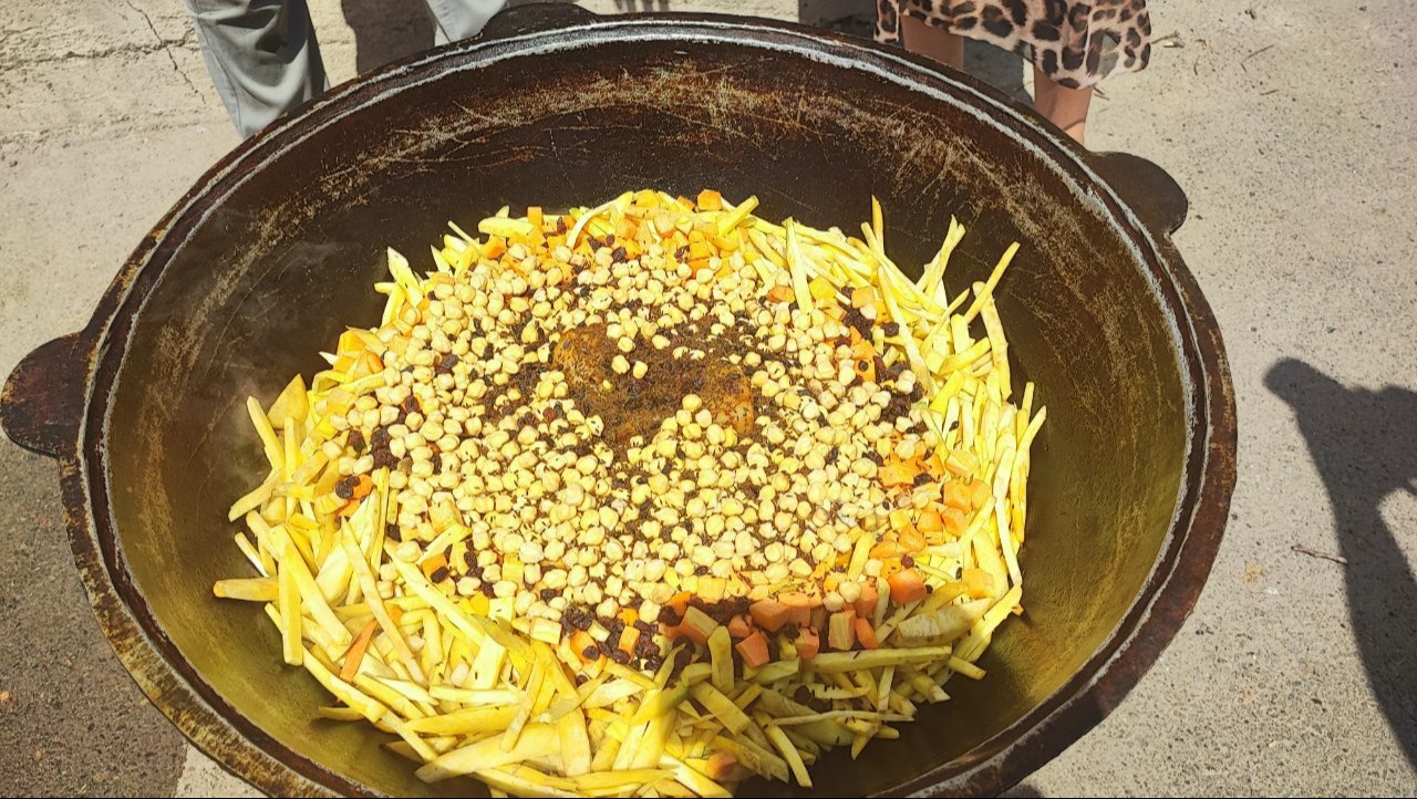 Ўзбек халқининг анъанавий байрамона, шоҳ таомларидан бири ҳисобланган палов 17 та қозонда юртимизнинг ҳар бир ҳудудидаги ретцеплар асосида тайёрланди.
