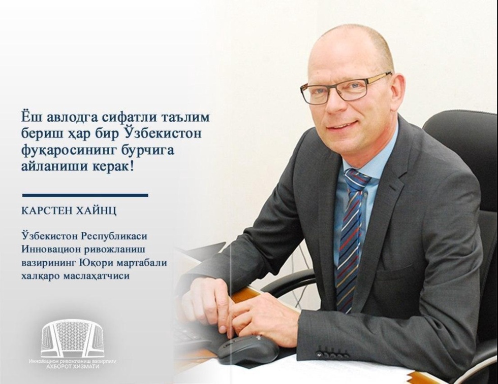 Мен жорий йилнинг июль ойидаГермания Таълим ва тадқиқотлар федерал вазирлиги ҳамда Ўзбекистон Республикаси Инновацион ривожланиш вазирлиги томонидан икки томонлама тадқиқотлар олиб боришга қаратилган ҳамкорликдаги танлов эълон қилингани Президентнинг юқори минбардан айтган фикрларига ҳамоҳанглиги мени хурсанд қилди. Бу танловда айнан иқлим ўзгариши муаммоларини ҳал этиш, интеллектуал қишлоқ хўжалиги ва рақамлаштириш масалаларига алоҳида эътибор қаратилган. Президент ўз маърузасида бу ёндашувни Ўзбекистоннинг келгуси иқтисодий ва ижтимоий тараққиёти учун муҳим деб ҳисоблади.