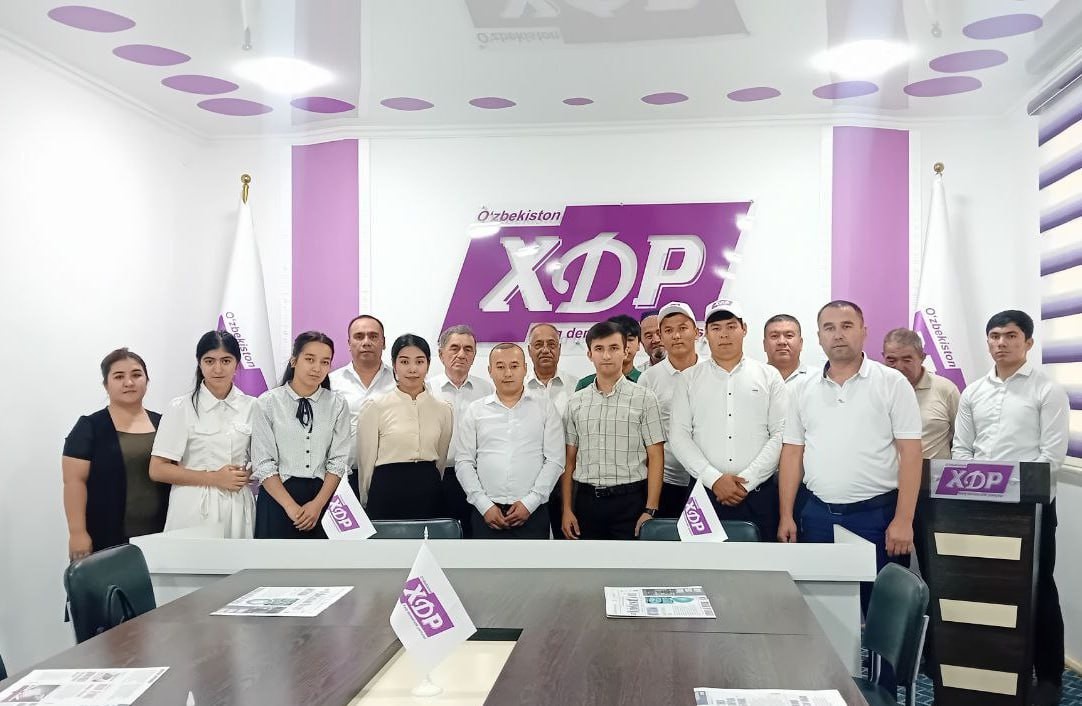 Учрашувда ЎзХДП Сирдарё вилояти кенгаши раис ўринбосари A.Сандиев, ЎзХДП Сирдарё вилояти кенгаши ёшлар ва хотин-қизлар билан ишлаш бўлими мудири Д.Елмуродов , ЎзХДП Сирдарё вилояти кенгаши туман-шаҳар раислари ҳамда ЎзХДП Сирдарё вилояти кенгаши “Ёшлар қаноти” кординаторлари иштирок етишди. Унда бу йилги сайловлар биринчи марта янгича, пропорсионал ва мажоритар тизимда ўтиши, мажоритар сайловда сайловчи шахсга овоз берса, пропорсионал сайловда у ўзи маъқул деб топган сиёсий партияга, яъни ғояга овоз бериши хақида атрофлича тушунтиришлар берилди.
