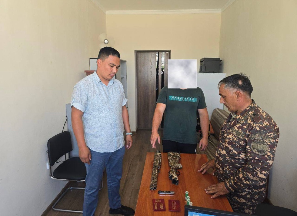 Ноқонуний ов қилмоқчи бўлган овчининг ёнидан 1 дона ов қуроли ва балиқ овлаш учун мосламаси Оҳангарон тумани Ички Ишлар бўлимига топширилди.