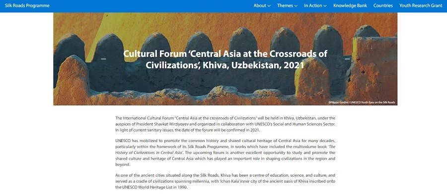 «ЮНEСКО кўп ўн йилликлар давомида Марказий Осиёнинг умумий тарихи ва умумий маданий меросини тарғиб қилиш бўйича саъй-ҳаракатлар амалга ошириб келмоқда. Бундай ишлар, жумладан, «Ипак йўли» лойиҳаси ва «Марказий Осиё цивилизациялари тарихи» номли кўп жилдли китобга киритилган ишларда қамраб олинган, – дейилган мақолада. – Бўлажак форум минтақа ва унинг сарҳадларидан ташқарида цивилизациялар шаклланишида муҳим роль ўйнаган Марказий Осиёнинг умумий маданияти ва меросини ўрганиш ҳамда оммалаштириш учун яна бир ажойиб имкониятдир».