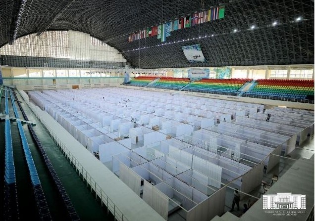 Юнусобод туманидаги гимнастика саройида ҳам коронавирусга гумон қилинганларни ташхис қилиш ва заруратга кўра даволаш учун 750 ўринли жой тайёрланмоқда.