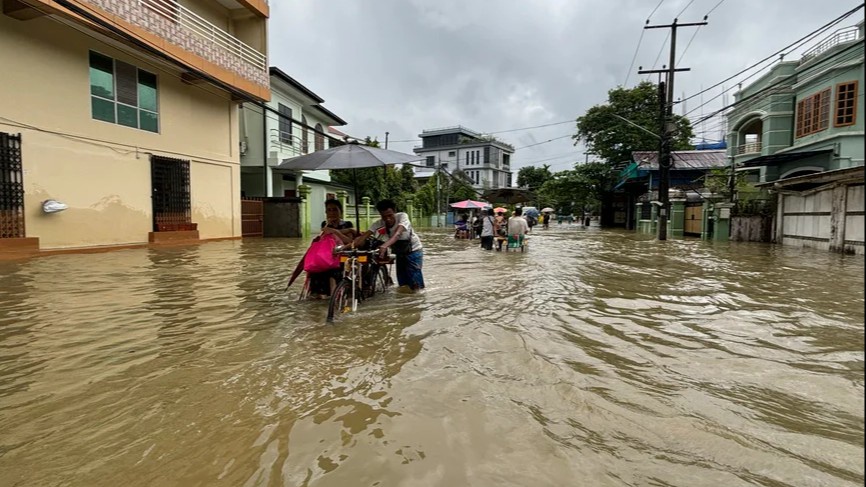 Мандалайда ёмғир пайтида ҳатто ер силкинишидан омон қолган уй ҳам қулаб тушди. Кўчаларни сув босди. Бошпанасиз қолган одамлар чодирли лагерларда яшамоқда. Улар ҳозир қийин дамларни бошдан кечирмоқда.