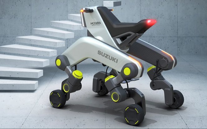 Мотоциклнинг оёқ-қўллари текис юзада ҳаракатланиш учун ғилдираклар билан жиҳозланган, аммо у нотекис жойларда ҳам ҳаракатлана олади.