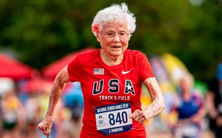 Хокинс начала участвовать в соревнованиях по бегу, когда ей исполнилось 100 лет. До этого она занималась ездой на велосипеде.