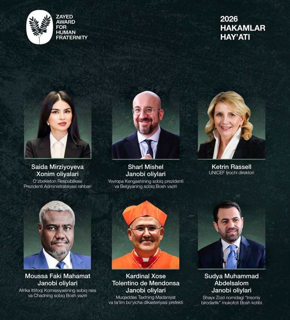 Горжусь возможностью работать вместе с отважными и дальновидными людьми, искренне верящими, что лучшее будущее человечества зависит от того, как мы относимся друг к другу», - отметила Саида Мирзиёева, выразив благодарность за оказанное доверие.