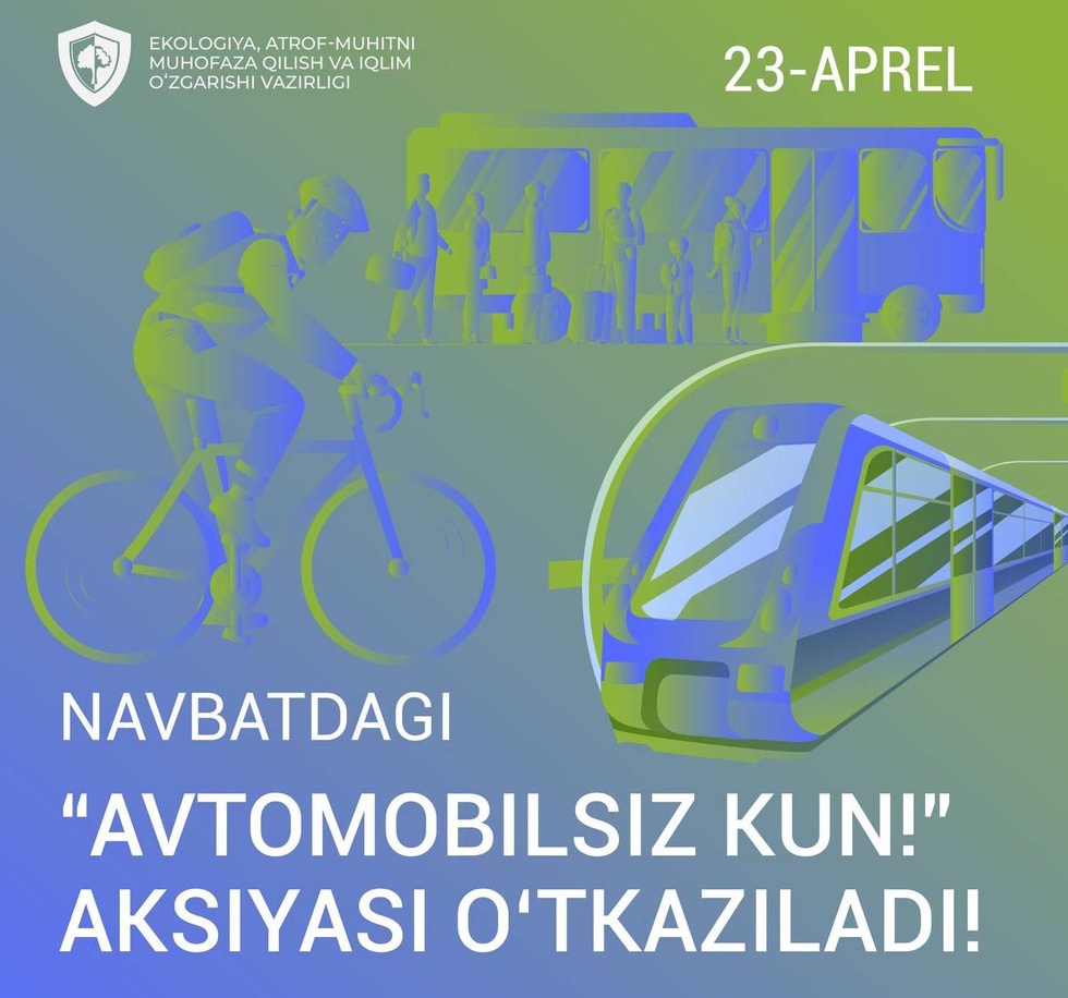 Министерство экологии напоминает, что ежемесячная акция «День без автомобиля» проводится в соответствии с Указом Президента Республики Узбекистан от 21 февраля 2024 года № 37 - каждую четвертую среду месяца.