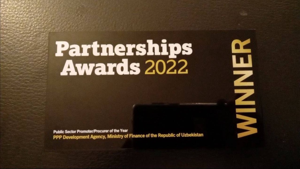 Премия Partnership Awards 2022 была особенной для Узбекистана, так как впервые в истории Узбекистана Агентство по развитию государственно-частного партнерства (PPPDA) при Министерстве финансов Республики Узбекистан победило в номинации «Промоутер/закупщик года в государственном секторе». Это яркий пример того, что программа ГЧП является основой государственной стратегии развития.