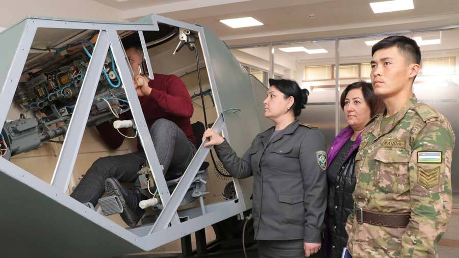 На экскурсии по учебным корпусам академии капитан Бобурмирзо Солиев рассказал о созданных в образовательном учреждении тематических кабинетах, посвященных деятельности Вооруженных Сил таких государств, как США, Россия, Китай, Франция, Индия, Пакистан. Эти знания важны для офицеров высшего звена.