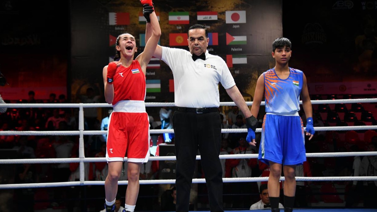 Ее подруга по команде Шодиёна Меликузиева (-50 кг) уверенно разобралась с вьетнамкой Нгуен Анх Тхи, победив 5:0.