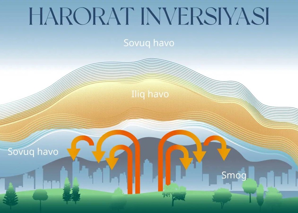 Ухудшение качества воздуха в Ташкенте связано с совокупностью нескольких природно-климатических и антропогенных факторов, которые одновременно проявляются и усиливают друг друга. Среди природно-климатических факторов самый значительный вклад вносит мощное явление температурной инверсии. О нём рассказал директор Национального центра по изменению климата при Национальном комитете по экологии и изменению климата Фаррух Саттаров.