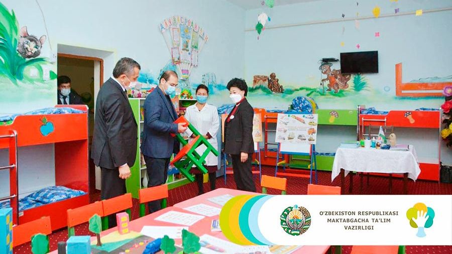 Первым объектом стала ДОО общего типа мощностью в 160 мест. На данный момент в нем прибывают 100 детей. Объект построен по корейской модели. Несмотря на отдалённое расположение, в саду созданы все условия для комфортной организации образовательно-воспитательного процесса, а также в каждой группе установлены камеры видеонаблюдения. Данная ДОО построена в рамках инвестиционной программы 2019 года на сумму 7,5 млрд сум.