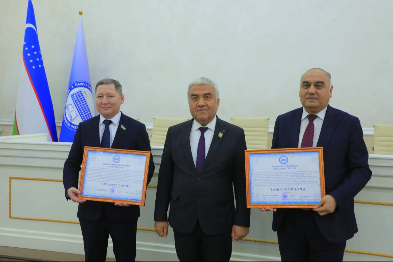 В ходе посещения Навоийского государственного педагогического института депутаты побеседовали с обучающимися в данном вузе студентами из Республики Каракалпакстан. Депутатам Жокаргы Кенгеса Республики Каракалпакстан вручена благодарность за сотрудничество с высшим учебным заведением, Сенату Олий Мажлиса - презентован фотоальбом о посещении Танзилой Нарбаевой Навоийского государственного педагогического института.