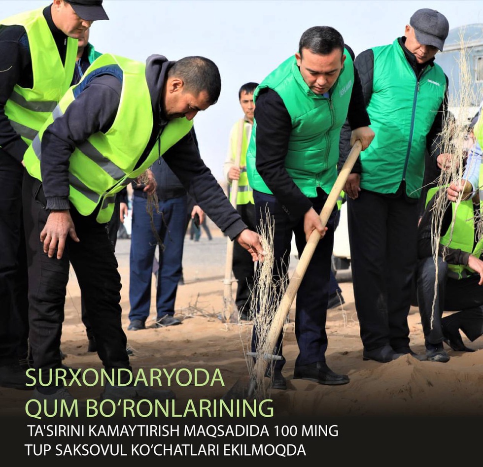 В рамках мероприятия планируется высадить 100 тысяч саженцев саксаула и 80 тонн семян из Каракалпакстана на общей площади 15 тысяч гектаров, из которых по 1000 га приходится на каждый район области.