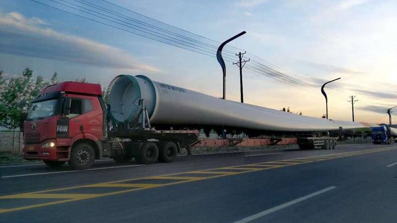 Ветрогенераторы для строящейся в Узбекистане ветровой электростанции доставляют из Китая на спецмашинах.