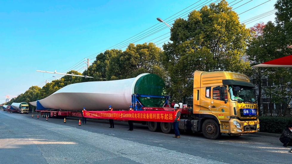 Ветрогенераторы для строящейся в Узбекистане ветровой электростанции доставляют из Ланьчжоу, Китай, на спецавтомобилях.