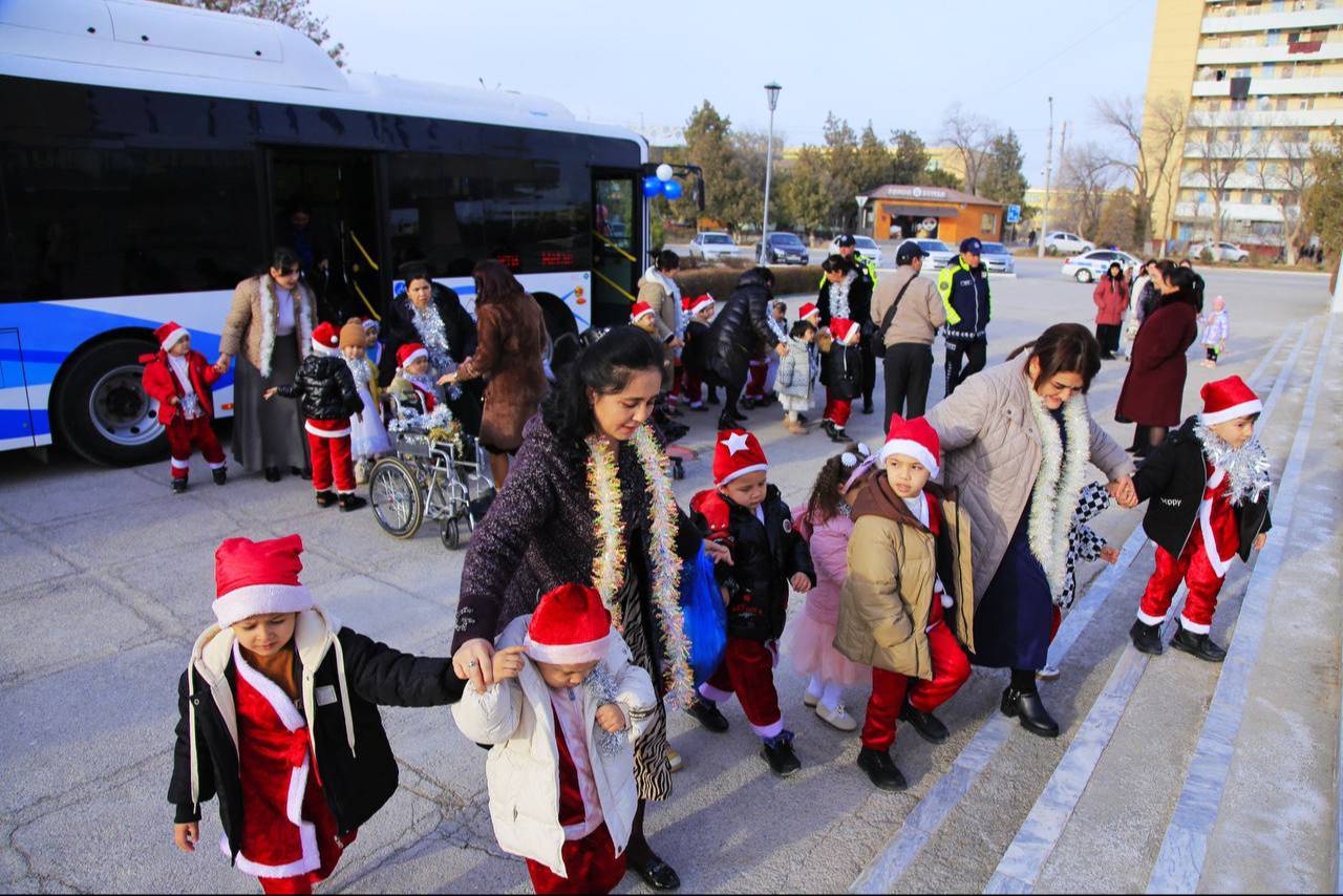 Воспитанники «Умида» отправились для участия в Президентской елке на новых автобусах.