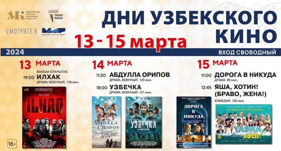 В рамках празднования столетия татарстанского кинематографа, кинодеятели Узбекистана приедут в Казань с ответным визитом. Почетными гостями открытия «Дней узбекского кино» станут заслуженный журналист Республики Узбекистан, общественный деятель, доктор наук, продюсер кино и телевидения, генеральный директор НА «Узбеккино» Фирдавс Абдухаликов и продюсер, основатель и генеральный директор киностудии «Бухорийлар» Улугбек Абдуллаев, которые представят киноленты программы.