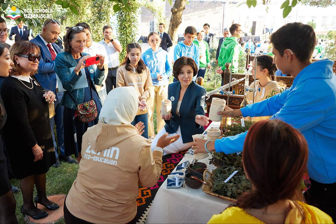 Зироат Мирзиёева искренне поздравила эко-школьников с получением Зеленого флага - символа Устойчивого развития и сказала: «У нас одна страна. Одна планета. Одна задача - сохранить ее. Нам всем нужно работать вместе. И видя, как вы активны сегодня, верю, что наше будущее в надежных руках».