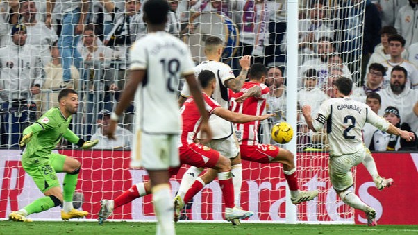 И потому волевая победа "Реала" после гола на 9-й минуте оставила непрятное послевкусие. Да, опять сыграл игрок замены. Браим Диас сделал навес на Беллингема, а тот скинул мяч головой под удар на дальней штанге Даниэля Карвахаля.