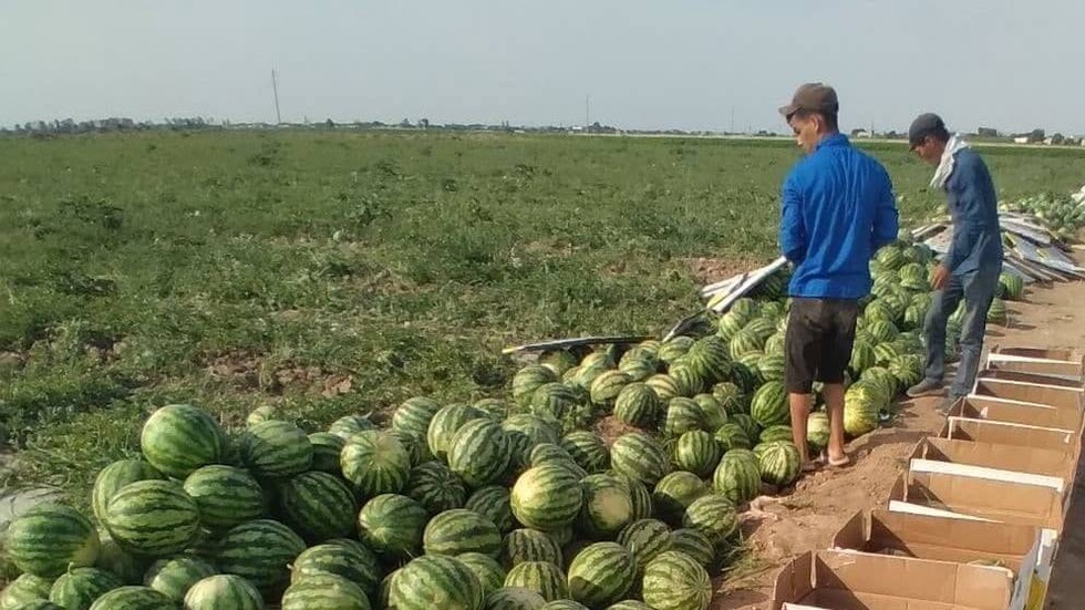 Работники собирают арбузы и прямо с поля грузят продукцию на автомобили. Далее арбузы отправляют в столицу Узбекистана – Ташкент, где развозятся по местным рынкам, а часть арбузов экспортируют в соседние страны.