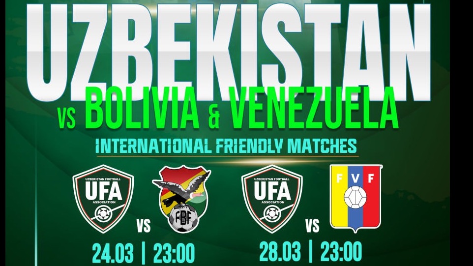 24 марта наши футболисты выйдут на поле против сборной Боливии, начало матча в 23.00 по Ташкенту. А 28 марта сыграют против сборной Венесуэлы, в это же время.