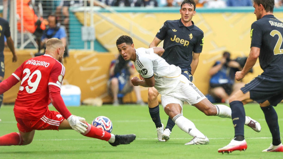 Хотя в старте обменялись дальними ударами мимо цели Федерико Вальверде и Кенан Йылдыз. Надо сказать, удар турка был намного ближе к цели. С паса Вальверде в касание пробивал Беллингем, но Микеле Ди Грегорио остановил ногой выстрел англичанина. А потом вратарь вытянулся в струнки и ладошкой отразил пушечный выстрел Вальверде. Красавец!