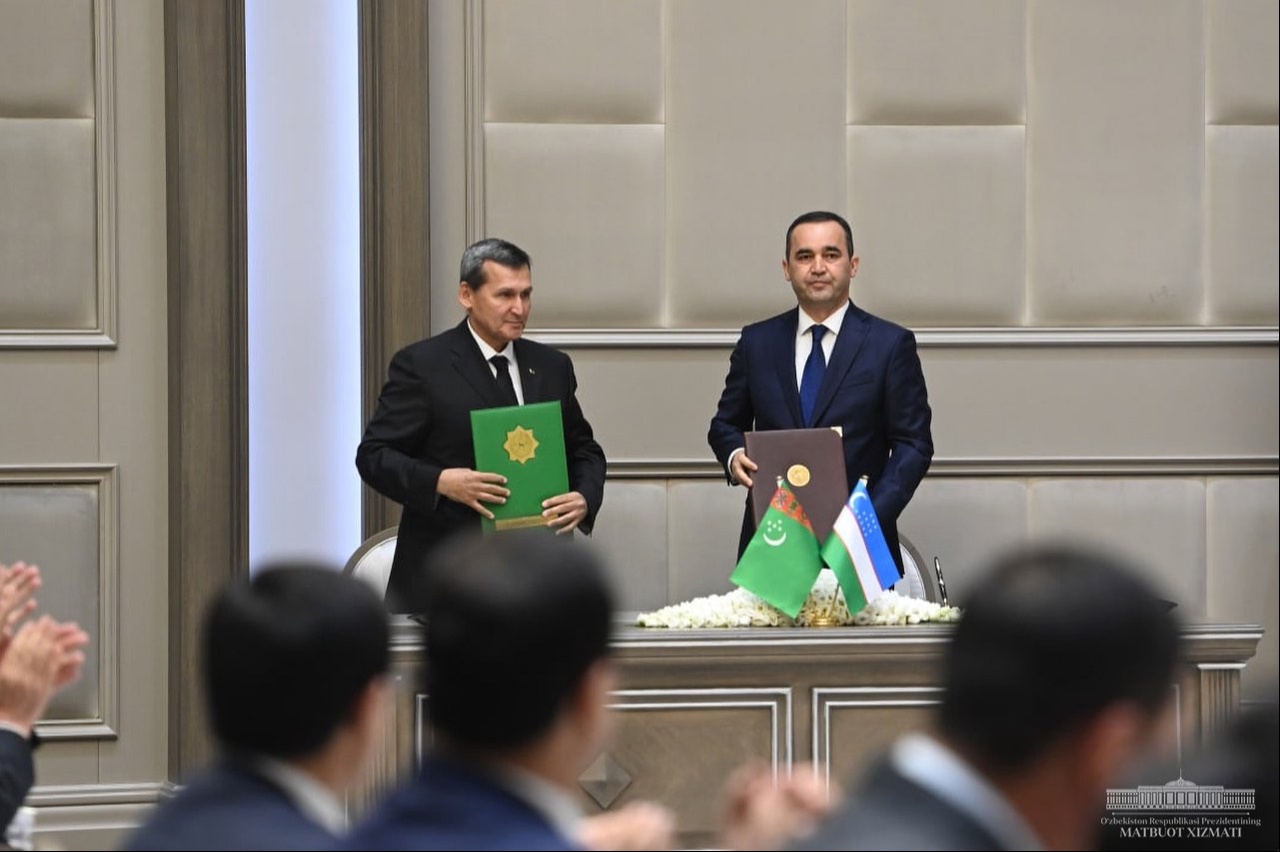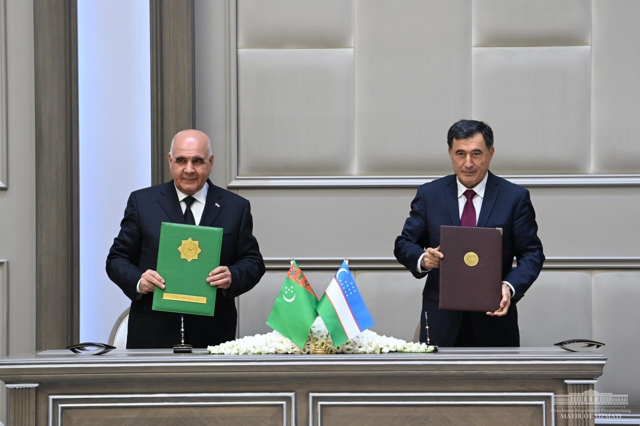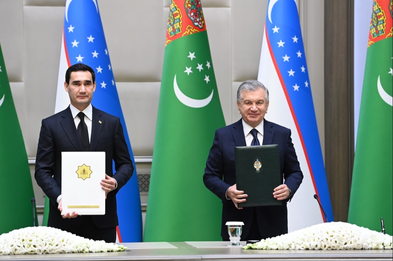 Шавкат Мирзиёев и Сердар Бердымухамедов подписали Совместное заявление, в котором закреплены основные договорённости и определены долгосрочные задачи по дальнейшему наращиванию многопланового сотрудничества и стратегического партнёрства между двумя странами.