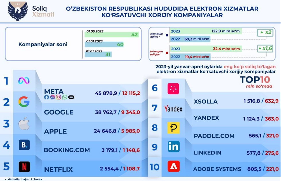- Google - 9,3 млрд сумов;