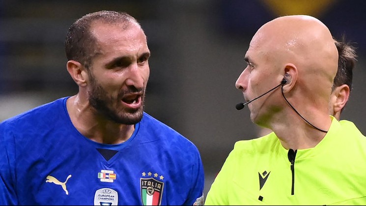 И так вышло, что ложку дегтя в боку мёда противостояния Италия-Испания положил российский арбитр Сергей Карасев. Сначала он показал желтую карточку капитану Италии Леонардо Бонуччи за споры по решению в ситуации с другим игроком обороны, а вторую желтую показал за выставленный локоть в верховой борьбе против Серхио Бускетса, капитана испанцев.