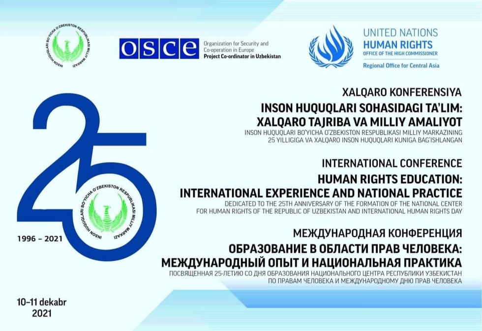Добавим, что международная конференция посвящена ряду знаменательных дат - 25-летию со дня образования Национального Центра Республики Узбекистан по правам человека и 10-летию со дня принятия Декларации Организации Объединенных Наций об образовании и подготовке в области прав человека.