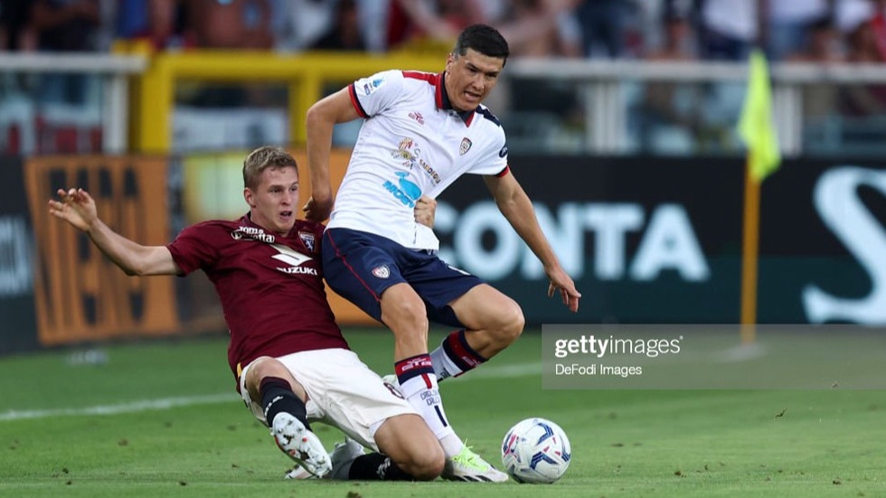 Элдор Шомуродов в Турине вышел раньше: на 62-минуте вместо ангольца Зиту Лувумбу, голевых моментов не создал. Однажды выиграл верх у ворот соперника, после его скидки головой мог забить партнер. Поработал в концовке в отборе у своих ворот. Хотя и не его это дело. Собственно, все. На кадре видно, как защитник туринцев держит его за майку. Опасались, видно!
