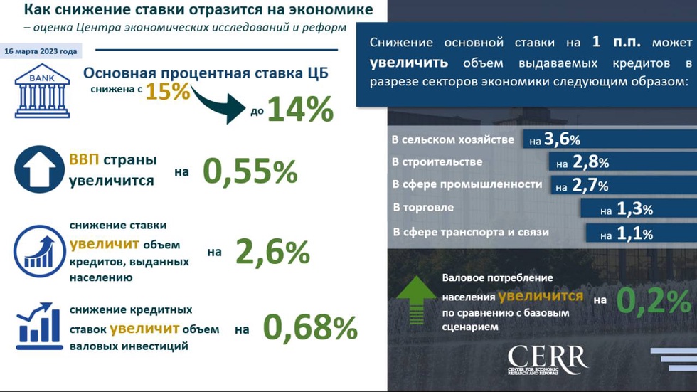 Снижение ставки позволит повысить экономические показатели и стимулировать рост экономики. Центр экономических исследований и реформ (ЦЭИР) провел оценку этих эффектов.
