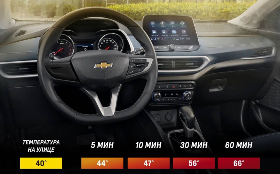 Салон автомобиля в жару нагревается до экстремально высоких температур за считаные минуты.