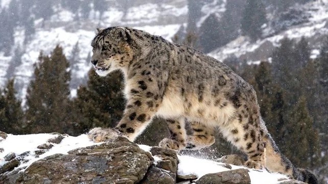 На камеру одной из фотоловушек, установленных на территории Гиссарского государственного заповедника, попала пара снежных барсов. Один из хищников даже остановился, словно позируя.