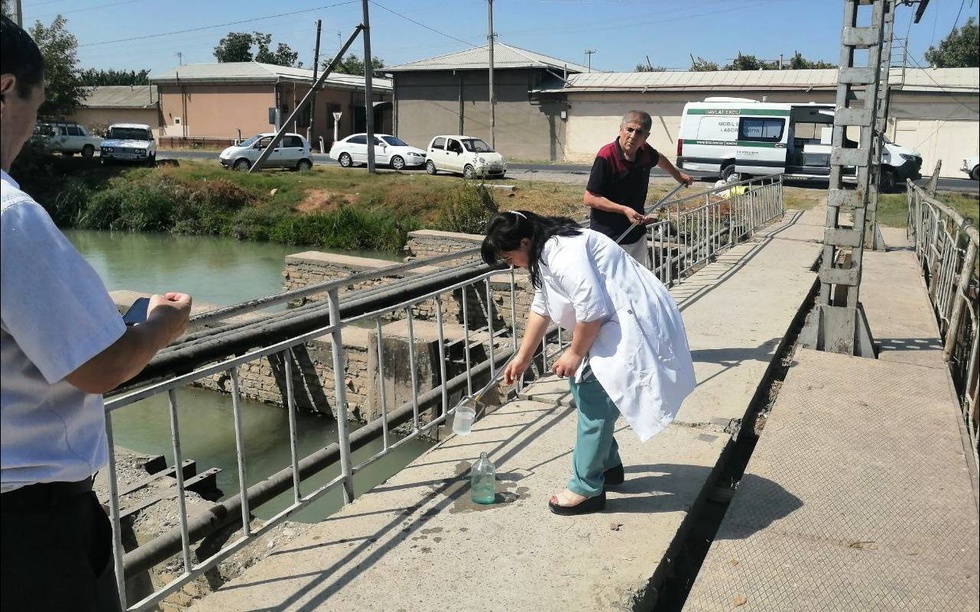 Специалисты взяли пробы для анализа из сточных вод, сбрасываемых в канал Бозсув, из верхней и нижней части 500 метров канала, и направили в экологическую мобильную лабораторию.
