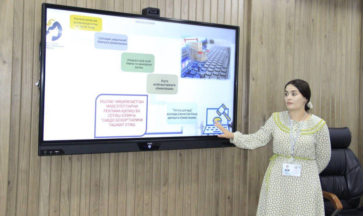 - По состоянию на 1 августа 2023 года нашим центром обучено основам предпринимательства и высоко востребованным на местном рынке труда профессиям 3126 жительниц области, - рассказывает автор проекта, директор Центра предпринимательства женщин Навоийской области Гулсанам Норова. - Это нетрудоустроенные женщины и девушки, находившиеся в продолжительном отпуске по уходу за ребенком, а также оказавшиеся в трудной экономической ситуации. Из них 674 прошли регистрацию как самозанятые и сегодня имеют постоянный источник дохода. Еще 513-ти содействовали в получении льготных кредитов. Совместно с помощниками хокимов районов (городов) в махаллях велась работа по выделению 471 женщине субсидий в качестве начального капитала для организации предпринимательства. Кроме этого, в направлении традиции на основе «устоз-шогирд» 211 временно безработных жительниц региона закрепили за лидерами-предпринимательницами, из которых 146 вышли на уровень, когда могут приносить пользу себе и своей семье.