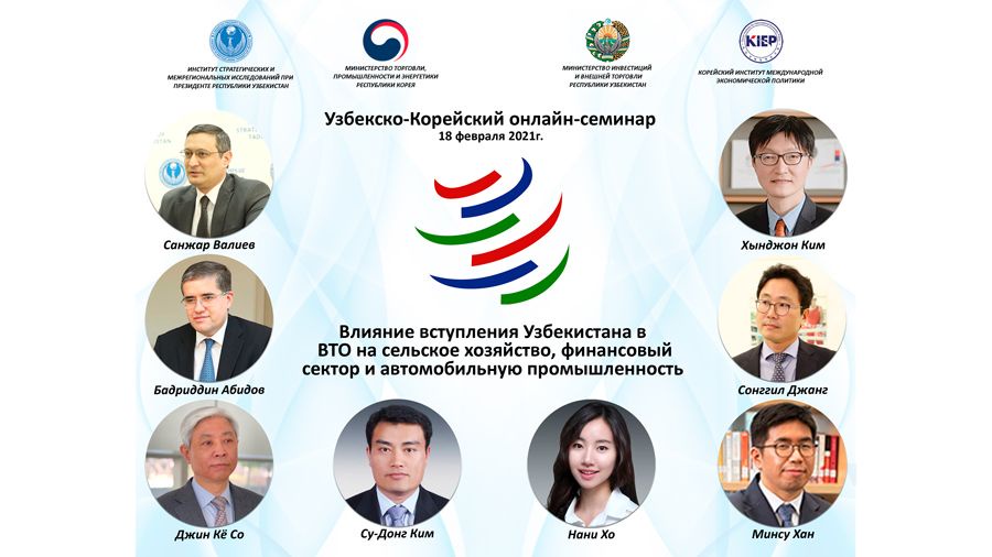 В данном контексте президент Корейского института международной экономической политики Ким Хынджон отметил, что усилия Ташкента по возобновлению процесса вступления в ВТО в 2020 году ускоряют процесс либерализации торговли и укрепляют внешнеэкономическую деятельность страны. При этом южнокорейский специалист высказал твердое убеждение, что проводимое в последние годы активное многоаспектное взаимодействие между профильными ведомствами двух стран поспособствует подготовке узбекской экономики к высокой конкурентной среде на мировых рынках.
