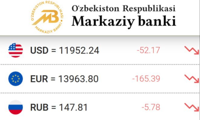 Согласно этому, официальный курс доллара снизился на 52,17 сума и составил 11 952,24 сума.